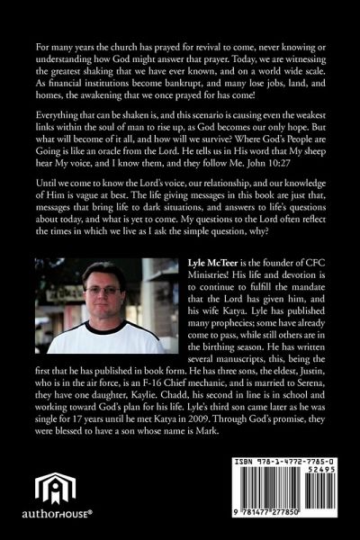 For many years the church has prayed for revival to come, never knowing or understanding how God might answer that prayer. Today, we are witnessing the greatest shaking that we have ever known, and on a world wide scale. As financial institutions become bankrupt, and many lose jobs, land, and homes, the awakening that we once prayed for has come! Everything that can be shaken is, and this scenario is causing even the weakest links within the soul of man to rise up, as God becomes our only hope. But what will become of it all, and how will we survive? Where God's People are Going is like an oracle from the Lord. He tells us in His word that My sheep hear My voice, and I know them, and they follow Me. John 10:27 Until we come to know the Lord's voice, our relationship, and our knowledge of Him is vague at best. The life giving messages in this book are just that, messages that bring life to dark situations, and answers to life's questions about today, and what is yet to come. My questions to the Lord often reflect the times in which we live as I ask the simple question, why?