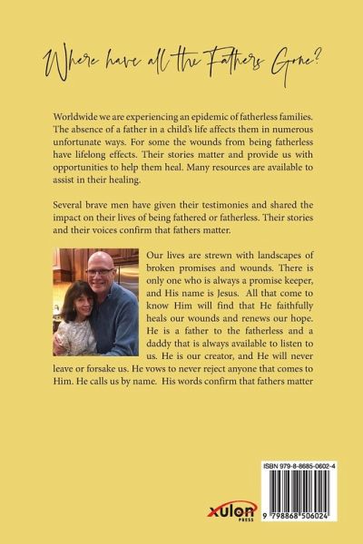 Worldwide we are experiencing an epidemic of fatherless families. The absence of a father in a child's life affects them in numerous unfortunate ways. For some the wounds from being fatherless have lifelong effects. Their stories matter and provide us with opportunities to help them heal. Many resources are available to assist in their healing. Several brave men have given their testimonies and shared the impact on their lives of being fathered or fatherless. Their stories and their voices confirm that fathers matter. Our lives are strewn with landscapes of broken promises and wounds. There is only one who is always a promise keeper, and His name is Jesus. All that come to know Him will find that He faithfully heals our wounds and renews our hope. He is a father to the fatherless and a daddy that is always available to listen to us. He is our creator, and He will never leave or forsake us. He vows to never reject anyone that comes to Him. He calls us by name. His words confirm that fathers matter.