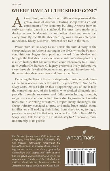 At one time, more than one million sheep roamed the grassy areas of Arizona. Herding sheep was a critical component of the economy, building Arizona from its early territorial days into statehood. Fortunes were made, and, during economic downturns and other disasters, some lost everything. By the 1890s, sheepherding was a major enterprise in Arizona. Today, just over 180,000 sheep live in the state. Where Have All the Sheep Gone? details the untold story of the sheep industry in Arizona starting in the 1500s when the Spanish conquistadors began their push northward from Mexico and brought the first sheep as a food source. Arizona's sheep industry is a rich history that has never been comprehensively told -- until now. Author Dr. Barbara G. Jaquay presents a lively, informative story through historical documents and personal interviews with the remaining sheep ranchers and family members. Depicting the lives of the early shepherds in Arizona and changes that have occurred over the last thirty years, Where Have All the Sheep Gone? casts a light on this disappearing way of life. It tells the compelling story of the families who worked diligently and proudly through successes and failures -- including droughts, range wars, and economic hard times due to government regulations and a shrinking workforce. Despite many challenges, the sheep industry managed to grow and make huge strides. Some families are still making their living from sheep today, trying to preserve a way of life that may soon be lost. Where Have All the Sheep Gone? tells the story of a vital industry to Arizona and, more importantly, of its people.