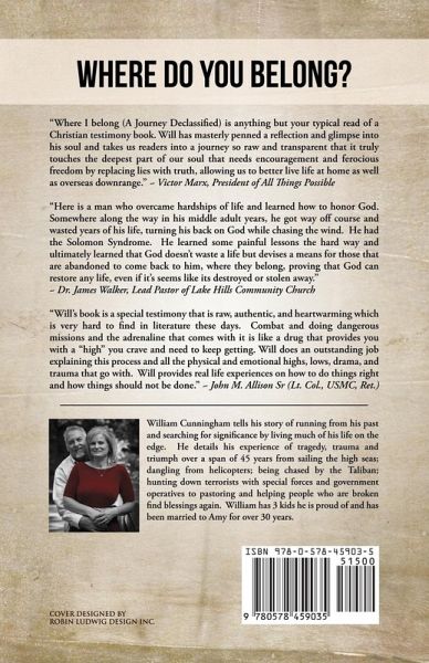 Will's book is a special testimony that is raw, authentic, and heartwarming which is very hard to find in literature these days. Combat and doing dangerous missions and the adrenaline that comes with it is like a drug that provides you with a "high" you crave and need to keep getting. Will does an outstanding job explaining this process and all the physical and emotional highs, lows, drama, and trauma that go with. Will provides real life experiences on how to do things right and how things should not be done. ~ John M. Allison Sr (Lt. Col., USMC, Ret.)