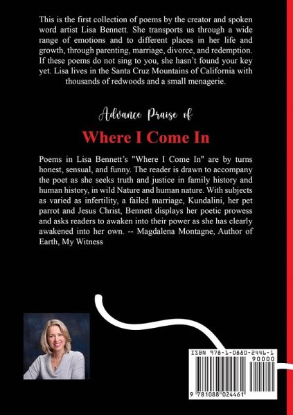 This is the first collection of poems by the creator and spoken word artist Lisa Bennett. She transports us through a wide range of emotions and to different places in her life and growth, through parenting, marriage, divorce, and redemption.