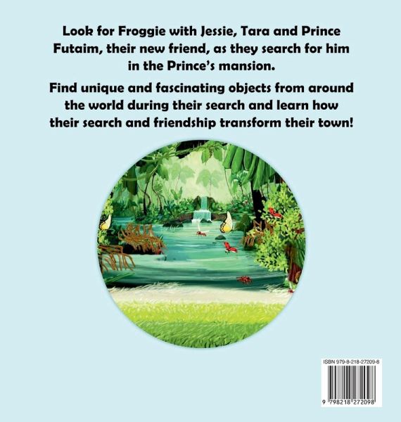 A street near Versailles, Kentucky, called Frogtown, inspired this story. The book involves two curious and friendly children, Jessie and Tara, who live on Frogtown Street and a lonely Jordanian prince who lives in a mansion near them. The prince takes the children and their parents on a tour of his mansion. During the tour his pet, Froggie, disappears. As the group searches for Froggie they visit various rooms in the prince's mansion. Each room is named after a different country or place and has cultural artifacts and decorations unique and special to it. The children are intrigued and excited to learn about so many cultures. Their search for Froggie beautifully changes all their lives and that of the area they live in. Read the book to find out how!