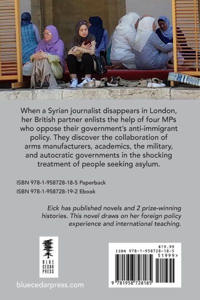 Ana Amara is a Syrian journalist who has been living in Britain for a decade after escaping the war in Syria. She meets a caring British woman who becomes her partner and moves with her brothers move into Jennifer's house. But the brothers disapprove of the two women's relationship. They move out and sever contact with the women. Ana is investigating the treatment of refugees and asylum seekers by Britain's new Rightist government and publishing her findings with international human rights organizations. Then, Ana disappears. Jennifer's frantic search for her leads to others in the immigrant community and to Parliament, where Jennifer hopes to find MPs (Members of Parliament) who will help her. A lower-level civil servant with oversight responsibilities is bothered by a rge, unexplained budget increase for housing refugees. He decides to visit a camp to see what he can learn. The camp troubles him. He shares "off the record" what he observed with a member of the opposition, MP Dame Edith. With three of her colleagues in the Commons, she agrees to look into the situation and to inquire about Ana Amara. Meanwhile, members of the immigrant community inside and outside the deportation camps are terrified by increasing disappearances and seizures of immigrants and by growing British Islamophobia. As the months pass, hope fades that the intrepid Gang of Four MPs will be able to find Ana and learn what is happening in the privately run deportation camps. Jennifer, Ana's brothers, the civil servant, the four MPs, and Muslims in Britain worry that Britain's anti-immigrant government will cracks down further as they scover that foreign billionaires, the military, arms manufacturers, academics, and autocratic governments of nations are collaborating with the party in power in Britain. Will Europe's oldest democracy ever again be a safe haven? And where is Ana Amara?