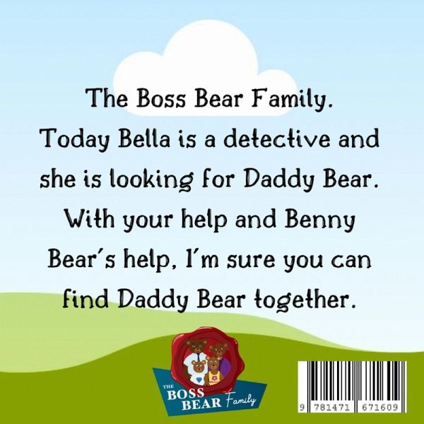 Can you help Bella Bear find Daddy Bear? Bella Bear is a detective today and is looking for Daddy Bear, on her search she meets mummy Bear and her brother Benny Bear. This book also includes pages after the story for story telling, which encourages our children to be imaginative and creative authors. The Boss Bear family are a family here to represent children's everyday life. While teaching children important life skills required to be smart respectful young people.