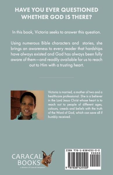 HAVE YOU EVER QUESTIONED WHETHER GOD IS THERE? In this book, Victoria seeks to answer this question. Using numerous Bible characters and stories, she brings an awareness to every reader that hardships have always existed and God has always been fully aware of them-and readily available for us to reach out to Him with a trusting heart.