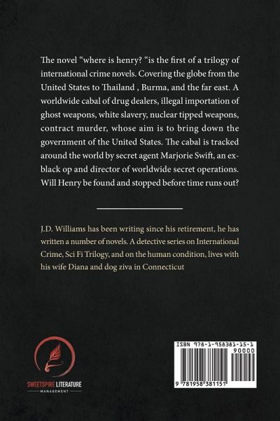 The novel "Where is Henry? "is the first of a trilogy of international crime novels. Covering the globe from the United States to Thailand , Burma, and the far east. A worldwide cabal of drug dealers, illegal importation of ghost weapons, white slavery, nuclear tipped weapons, contract murder, whose aim is to bring down the government of the United States. The cabal is tracked around the world by secret agent Marjorie Swift, an ex- black op and director of worldwide secret operations. Will Henry be found and stopped before time runs out?