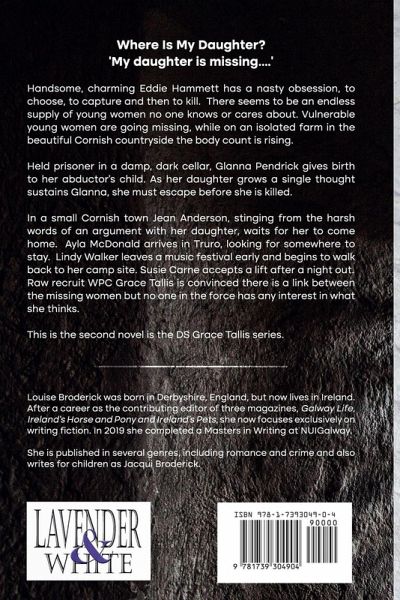 Where Is My Daughter?'My daughter is missing....' Handsome, charming Eddie Hammett has a nasty obsession, to choose, to capture and then to kill. There seems to be an endless supply of young women no one knows or cares about. Vulnerable young women are going missing, while on an isolated farm in the beautiful Cornish countryside the body count is rising. Held prisoner in a damp, dark cellar, Glanna Pendrick gives birth to her abductor's child. As her daughter grows a single thought sustains Glanna, she must escape before she is killed. In a small Cornish town Jean Anderson, stinging from the harsh words of an argument with her daughter, waits for her to come home. Ayla McDonald arrives in Truro, looking for somewhere to stay. Lindy Walker leaves a music festival early and begins to walk back to her camp site. Susie Carne accepts a lift after a night out. Raw recruit WPC Grace Tallis is convinced there is a link between the missing women but no one in the force has any interest in what she thinks. This is the second novel is the DS Grace Tallis series.