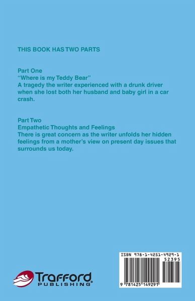 Where is my Teddy Bear is a true tragedy. It is very sad and shows the pain that can be inflicted on others because of drinking and driving. It goes to show how one minute we can be a happy united young family and in a second its all taken away from us. The second part of the book deals with the author's own thoughts and feelings on several different topics that are of great concern to her. This part was written with reflections on the author's experience with her Canadian ESL students and the Children Aid Society. Here are some examples of her thoughts: "War is the thorn in our world today." "Hate is a fast acting poison, to forgive is a cure." "We all belong to the brotherhood of humanity." "Why do some of us refer to a country as a third world." "I always thought we had ONE WORLD." (Homida)