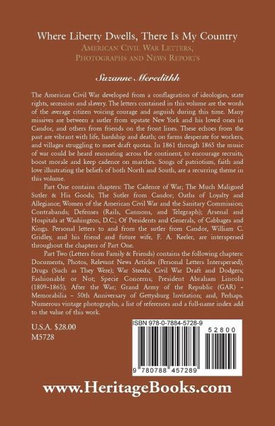 The American Civil War developed from a conflagration of ideologies, state rights, secession and slavery. The letters contained in this volume are the words of the average citizen voicing courage and anguish during this time. Many missives are between a sutler from upstate New York and his loved ones in Candor, and others from friends on the front lines. These echoes from the past are vibrant with life, hardship and death; on farms desperate for workers, and villages struggling to meet draft quotas. In 1861 through 1865 the music of war could be heard resonating across the continent, to encourage recruits, boost morale and keep cadence on marches. Songs of patriotism, faith and love illustrating the beliefs of both North and South, are a recurring theme in this volume. Part One contains chapters: The Cadence of War; The Much Maligned Sutler & His Goods; The Sutler from Candor; Oaths of Loyalty and Allegiance; Women of the American Civil War and the Sanitary Commission; Contrabands; Defenses (Rails, Cannons, and Telegraph); Arsenal and Hospitals at Washington, D.C.; Of Presidents and Generals, of Cabbages and Kings. Personal letters to and from the sutler from Candor, William C. Gridley, and his friend and future wife, F. A. Keeler, are interspersed throughout the chapters of Part One. Part Two (Letters from Family & Friends) contains the following chapters: Documents, Photos, Relevant News Articles (Personal Letters Interspersed); Drugs (Such as They Were); War Steeds; Civil War Draft and Dodgers; Fashionable or Not; Specie Concerns; President Abraham Lincoln (1809–1865); After the War; Grand Army of the Republic (GAR) – Memorabilia – 50th Anniversary of Gettysburg Invitation; and, Perhaps. Numerous vintage photographs, a list of references and a full-name index add to the value of this work.