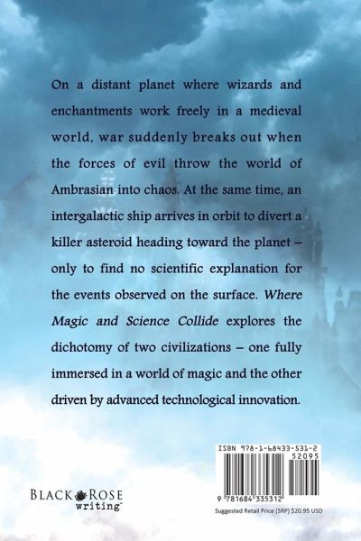On a distant planet where wizards and enchantments work freely in a medieval world, war suddenly breaks out when the forces of evil throw the world of Ambrasian into chaos. At the same time, an intergalactic ship arrives in orbit to divert a killer asteroid heading toward the planet – only to find no scientific explanation for the events observed on the surface. Where Magic and Science Collide explores the dichotomy of two civilizations – one fully immersed in a world of magic and the other driven by advanced technological innovation.