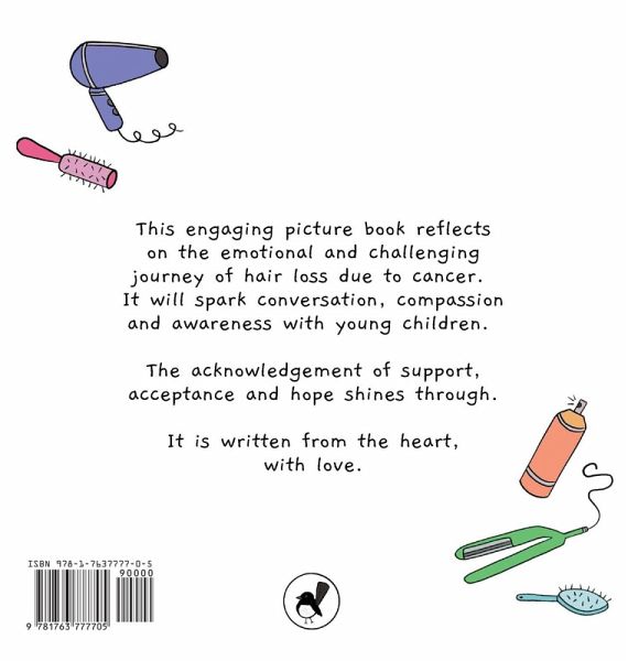 Where Oh Where Is My Glorious Hair? is a book reflecting the emotional and challenging journey of hair loss due to cancer. It is specifically written to raise conversation, compassion and awareness with young children. Alongside a light hearted look at the wide variety of crazy, fun and interesting hair colours and styles, the life changing journey of a Mother is depicted. The book concludes with an acknowledgement of support, acceptance and hope. Cancer has many symptoms, adverse reactions and deep feelings to comprehend, touching every member of a family in such differing ways. The love, care and understanding that survivors are immersed in, is paramount to the incredible strength required. This book is for the brave, the bold, the beautiful!