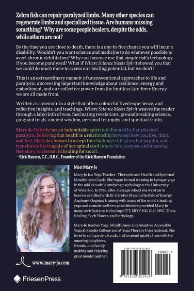 Zebra fish can repair paralyzed limbs. Many other species can regenerate limbs and specialized tissue. Are humans missing something? Why are some people healers, despite the odds, while others are not? By the time you are close to death, there is a one-in-five chance you will incur a disability. Wouldn't you want science and medicine to do whatever possible to avert chronic debilitation? Why can't science use that simple fish's technology if you become paralyzed? What if Where Science Meets Spirit showed you that we could do much more to access our healing potential, but we don't? This is an extraordinary memoir of unconventional approaches to life and paralysis, uncovering important knowledge about resilience, energy and embodiment, and our collective power from the limitless Life-force Energy we are all made from. Written as a memoir in a style that offers colourful lived experience, and reflective insights, and teachings, Where Science Meets Spirit weaves the reader through a labyrinth of woe, fascinating revelations, groundbreaking science, poignant trials, ancient wisdom, personal triumphs, and spiritual truths.
