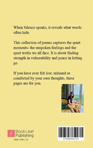 When silence speaks, it reveals what words often hide. This collection of poems captures the quiet moments-the unspoken feelings, hidden heartaches and quiet truths we all face. It's about finding clarity in stillness, strength in vulnerability and peace in letting go. If you've ever felt lost, unheard or comforted by your own thoughts, these pages are for you. May you find a little bit of your own story here-and know that you're never truly alone.