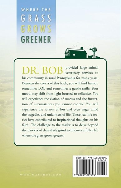 Dr. Bob has provided large animal veterinary services to his community in rural Pennsylvania for many years. While reading his book you will find humor but also experience the elation of success and the frustration of circumstances you cannot control. You will experience the sorrow of loss and anger amid the tragedies and unfairness of life. All of these real-life stories have contributed to inspirational thoughts on his faith. This book will challenge the reader to delve beyond the barriers of their daily grind and discover a fuller life where the grass grows greener.