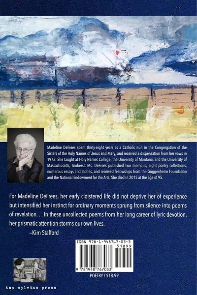 Where the Horse Takes Wing, Madeline DeFrees' uncollected poems, published in her centennial year, afford a reader the unique opportunity to follow the arc of a poet's vision for sixty of her ninety-six years, from the convent to the university, to her beloved garden. Madeline was world wise, and that wisdom infuses these poems.