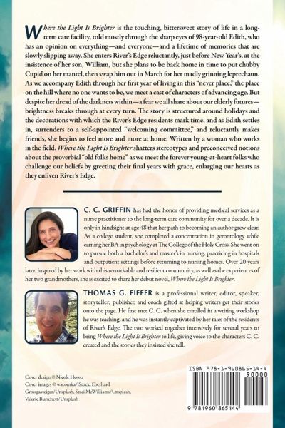 Where the Light Is Brighter is the touching, bittersweet story of life in a long-term care facility, told mostly through the sharp eyes of 98-year-old Edith, who has an opinion on everything-and everyone-and a lifetime of memories that are slowly slipping away. She enters River's Edge reluctantly, just before New Year's, at the insistence of her son, William, but she plans to be back home in time to put chubby Cupid on her mantel, then swap him out in March for her madly grinning leprechaun. As we accompany Edith through her first year of living in this "never place," the place on the hill where no one wants to be, we meet a cast of characters of advancing age. But despite her dread of the darkness within-a fear we all share about our elderly futures-brightness breaks through at every turn. The story is structured around holidays and the decorations with which the River's Edge residents mark time, and as Edith settles in, surrenders to a self-appointed "welcoming committee," and reluctantly makes friends, she begins to feel more and more at home. Written by a woman who works in the field, Where the Light Is Brighter shatters stereotypes and preconceived notions about the proverbial "old folks home" as we meet the forever young-at-heart folks who challenge our beliefs by greeting their final years with grace, enlarging our hearts as they enliven River's Edge.