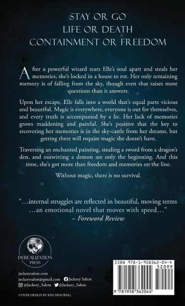 After a powerful wizard tears Elle's soul apart and steals her memories, she's locked in a house to rot. Her only remaining memory is of falling from the sky, though even that raises more questions than it answers. Upon her escape, she falls into a world that's equal parts vicious and beautiful. Magic is everywhere, everyone is out for themselves, and every truth is accompanied by a lie. Her lack of memories grows maddening and painful. She's positive that the key to recovering her memories is in the sky-castle from her dreams, but getting there will require magic she doesn't have. Traversing an enchanted painting, stealing a sword from a dragon's den, and outwitting a demon are only the beginning. And this time, she's got more than freedom and memories on the line. Without magic, there is no survival.