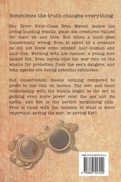 Sometimes the truth changes everything. Sky Diver First-Class Eron Marcel makes his living hunting whalls, giant sea creatures valued for their oil and hide. But when a hunt goes disastrously wrong, Eron is saved by a creature he did not know even existed: half-human and half-fish. Working with his rescuer, a young mer named Ket, Eron learns that the mer rely on the whalls for protection from the sea's dangers, and both species are facing potential extinction. But conservation means nothing compared to profit to the rich oil barons. The mer and their relationship with the whalls might be the key to gaining even more power over the sea and its spoils, and Ket is the perfect bargaining chip. Eron is faced with the decision of what is more important: saving the mer, or saving Ket? Where the Sky Meets the Sea is an M/M adventure-romance set in a steampunk-style world. It is a standalone novel with a HEA and no cliffhanger.