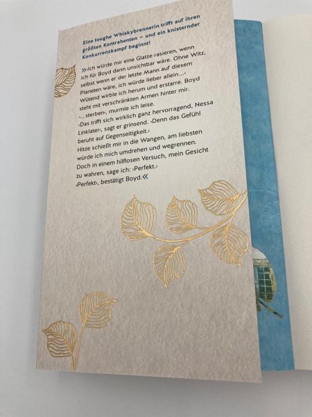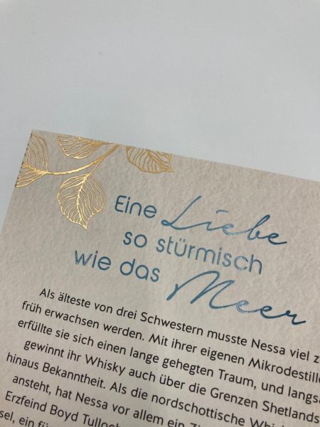 Als älteste von drei Schwestern musste Nessa viel zu früh erwachsen werden. Mit ihrer eigenen Mikrodestillerie erfüllte sie sich endlich einen Traum, und langsam gewinnt ihr Whisky auch über Shetland hinaus Bekanntheit. Als die nordschottische Whiskymesse ansteht, hat sie vor allem ein Ziel: Sie will es ihrem Erzfeind Boyd Tulloch, Erbe der größten Destillerie der Insel, ein für alle Mal zeigen. Doch schon bald muss Nessa zugeben, dass Boyd nicht nur ein arroganter, sondern auch ein ziemlich attraktiver Idiot ist. Und der Konkurrenzkampf wird ganz neu angeheizt.