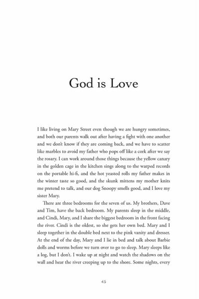 The Lucky Caul Scars are Tattoos with Better Stories, or How I Became a Carpenter Peanut Butter and Jelly Self Defense, or How Librarians Are Making the World a Safer Place Matter Rearranged One Man’s Trash Love Is War Bendable Barbie Dead Man’s Float Flames of Jesus The Piano, or The Lord Works in Mysterious Ways; Mothers Do Not Snap! She’s Climbing the Stairway to Heaven Me, Moses, and the Dog I Love You; Will You Bury Me? Diving and Emerging