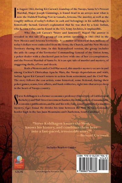 In August 1863, during Kit Carson's roundup of the Navajo, Santa Fe's Provost Marshal, Major Joseph Cummings, is found dead in an arroyo near what is now the Hubbell Trading Post in Ganado, Arizona. The murder, as well as the roughly million of today's dollars in cash and belongings in his saddlebags, is historically factual. Carson's explanation that he was shot by a lone Indian, which, even today, can be found in the U.S. Army Archives, is implausible. Who did kill Carson's "brave and lamented" Major? The answer is revealed in this tale of a group of con artists operating in 1861-1863 in the New Mexico and Arizona Territories. As a matter of historical fact, millions of today's dollars were embezzled from the Army, the Church, and the New Mexico Territory during this time. In this fictionalized version, the group includes the aide de camp of the Territories' Commanding General of the Union Army, a poker dealer with a checkered past in love with one of her co-conspirators, and the Provost Marshal of Santa Fe. It is an epic tale of murder and mystery, of staggering thefts, of love and deceit. Both a Western and a Civil War novel, this murder mystery occurs in and among Cochise's Chiricahua Apache Wars, the Navajo depredations and wars, Indian Agent Kit Carson's return to action from retirement, and the Civil War. The story follows the con artists, some historical, some fictional, during their poker games, scams, love affairs, and bank robberies, right into that arroyo deep in the heart of Navajo country. STEVEN W. KOHLHAGEN is a former economics professor (University of California at Berkeley) and Wall Street investment banker. He is the author of innumerable economics publications, and he and his wife, Gale, jointly published a murder mystery, "Tiger Found." He divides his time between the New Mexico-Colorado border high in the San Juan Mountains and Charleston, South Carolina.