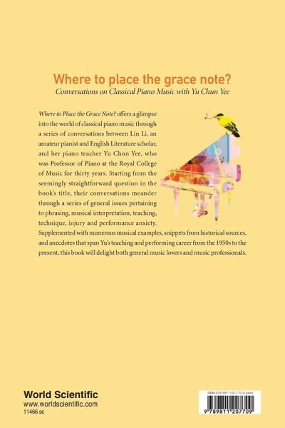Where to Place the Grace Note? offers a glimpse into the world of classical piano music through a series of conversations between Lin Li, an amateur pianist and English Literature scholar, and her piano teacher Yu Chun Yee, who was Professor of Piano at the Royal College of Music for thirty years. Starting from the seemingly straightforward question in the book's title, their conversations meander through a series of general issues pertaining to phrasing, musical interpretation, teaching, technique, injury and performance anxiety. Supplemented with numerous musical examples, snippets from historical sources, and anecdotes that span Yu's teaching and performing career from the 1950s to the present, this book will delight both general music lovers and music professionals.