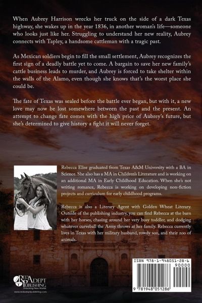 When Aubrey Harrison wrecks her truck on the side of a dark Texas highway, she wakes up in the year 1836, in another woman's life-someone who looks just like her. Struggling to understand her new reality, Aubrey connects with Tapley, a handsome cattleman with a tragic past. As Mexican soldiers begin to fill the small settlement, Aubrey recognizes the first sign of a deadly battle yet to come. A bargain to save her new family's cattle business leads to murder, and Aubrey is forced to take shelter within the walls of the Alamo, even though she knows that's the worst place she could be. The fate of Texas was sealed before the battle ever began, but with it, a new love may now be lost somewhere between the past and the present. An attempt to change fate comes with the high price of Aubrey's future, but she's determined to give history a fight it will never forget.