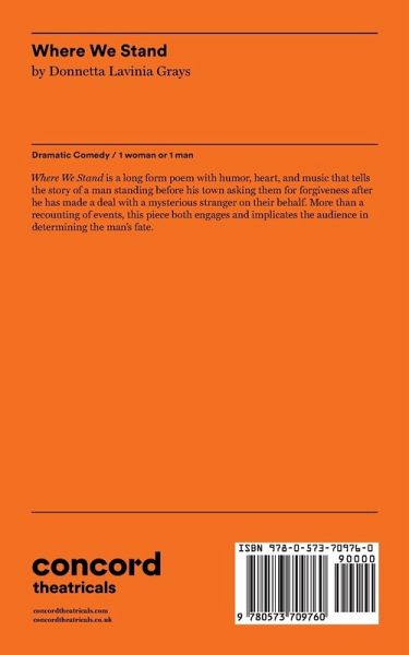 Where We Stand is a long form poem with humor, heart, and music that tells the story of a man standing before his town asking them for forgiveness after he has made a deal with a mysterious stranger on their behalf. More than a recounting of events, this piece both engages and implicates the audience in determining the man's fate.