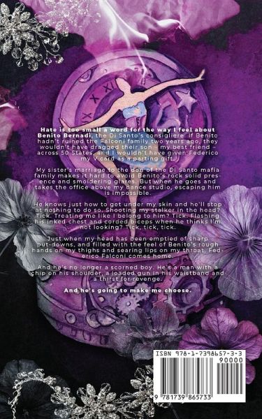 Hate is too small a word for the way I feel about Benito Bernadi, the Di Santo's consigliere. If Benito hadn't ruined the Falconi family two years ago, they wouldn't have dragged their son - my best friend - across 50 States, and I wouldn't have given Federico my V card as a parting gift. My sister's marriage to the don of the Di Santo mafia family makes it hard to avoid Benito's rock solid presence and smoldering glares. But when he goes and takes the office above my dance studio, escaping him is impossible. He knows just how to get under my skin and he'll stop at nothing to do so. Shooting my stalker in the head? Tick. Treating me like I belong to him? Tick. Flashing his inked chest and corded biceps when he thinks I'm not looking? Tick, tick, tick. Just when my head has been emptied of sharp put-downs, and filled with the feel of Benito's rough hands on my thighs and searing lips on my throat, Federico Falconi comes home. And he's no longer a scorned boy. He's a man with a chip on his shoulder, a loaded gun in his waistband and a thirst for revenge. And he's going to make me choose.