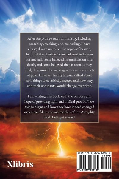 After forty-three years of ministry, including preaching, teaching, and counseling, I have engaged with many on the topics of heaven, hell, and the afterlife. Some believed in heaven but not hell, some believed in annihilation after death, and some believed that as soon as they died, they would be walking in heaven on streets of gold. However, hardly anyone talked about how things were initially created and how they, and their occupants, would change over time. I am writing this book with the purpose and hope of providing light and biblical proof of how things began and how they have indeed changed over time. All in the master plan of the Almighty God. Let's get started.