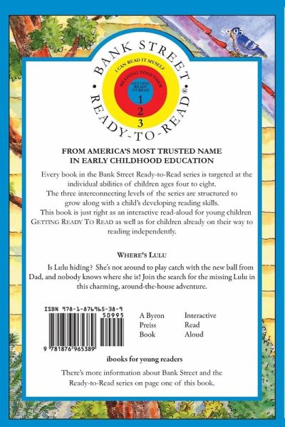 Is Lulu hiding? She's not around to play catch with the new ball from Dad, and nobody knows where she is! Join the search for the missing Lulu in this charming, around-the-house adventure. About¿The¿Bank¿Street Ready-To-Read Series More than seventy years of educational research and innovative teaching have given the Bank Street College of Education the reputation as America's most trusted name in early childhood education. Because no two children are exactly alike in their development, we have designed the Bank Street Ready-to-Read series in three levels to accommodate the individual stages of reading readiness of children ages four through eight. • Level 1: Getting Ready To Read- (Pre-K to Grade 1) Books are perfect for reading aloud with children who are getting ready to read or are just beginning to read words or phrases. • Level 2: Reading Together-(Grades 1 to 3) Books are written especially for children who are on their way to reading independently but who may need help. • Level 3: I Can Read It Myself-(Grades 2 to 3) Books are designed for children able to read on their own. They also can be enjoyed as read-alouds. Our three levels make it easy to select the books most appropriate for a child's development and enable him or her to grow with the series step by step. The Bank Street Ready-to-Read books also overlap and reinforce each other, further encouraging the reading process. We feel that making reading fun and enjoyable is the single most important thing that you can do to help children become good readers. And we hope you'll be a part of Bank Street's long tradition of learning through sharing. -The Bank Street College of Education
