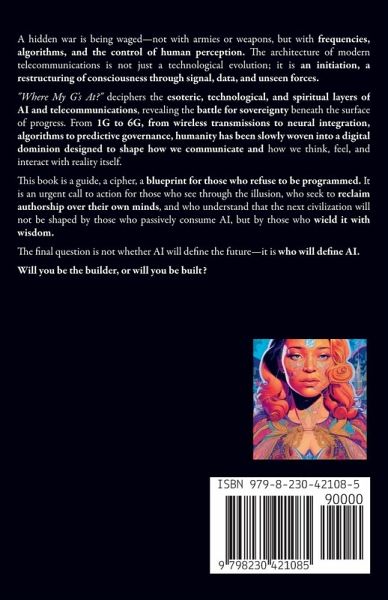 There is a hidden war being waged-not with armies or weapons, but with frequencies, algorithms, and the control of human perception. The architecture of modern telecommunications is not just a technological evolution; it is an initiation, a restructuring of consciousness through signal, data, and unseen forces. "Where My G's At?" deciphers the esoteric, technological, and spiritual layers of AI and telecommunications, revealing the battle for sovereignty taking place beneath the surface of progress. From 1G to 6G, from wireless transmissions to neural integration, from algorithms to predictive governance, humanity has been slowly woven into a digital dominion designed to shape not only how we communicate but how we think, feel, and interact with reality itself. This book explores the hidden hands shaping this evolution, the ancient sciences embedded within AI's foundation, and the spiritual forces influencing its direction. It unveils the Four Pillars of Sovereignty necessary to maintain autonomy in a world where thought is no longer private, time is compressed by technology, and the final frontier of conquest is the human mind itself. For every demonic force that seeks to distort, there is an angelic intelligence working to restore. This book decodes the battle between light and shadow within the digital age, exploring how AI can be an instrument of either enslavement or expansion. "Where My G's At?" is a guide, a cipher, a blueprint for those who refuse to be programmed. It is an urgent call to action for those who see through the illusion, who seek to reclaim authorship over their own minds, and who understand that the next civilization will not be shaped by those who passively consume AI, but by those who wield it with wisdom. The final question is not whether AI will define the future-it is who will define AI. Will you be the builder, or will you be built?