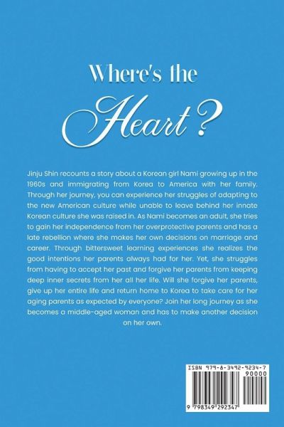 Jinju Shin recounts a story about a Korean girl Nami growing up in the 1960s and immigrating from Korea to America with her family. Through her journey, you can experience her struggles of adapting to the new American culture while unable to leave behind her innate Korean culture she was raised in. As Nami becomes an adult, she tries to gain her independence from her overprotective parents and has a late rebellion where she makes her own decisions on marriage and career. Through bittersweet learning experiences she realizes the good intentions her parents always had for her. Yet, she struggles from having to accept her past and forgive her parents from keeping deep inner secrets from her all her life. Will she forgive her parents, give up her entire life and return home to Korea to take care for her aging parents as expected by everyone? Join her long journey as she becomes a middle-aged woman and has to make another decision on her own.