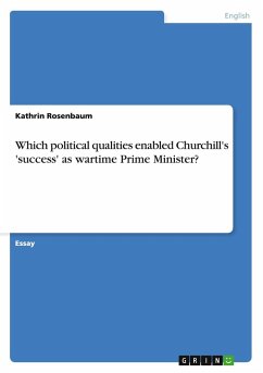 Essay from the year 2008 in the subject English Language and Literature Studies - Culture and Applied Geography, grade: 2,7, The University of Western Australia (Arts, Humanities and Social Studies), course: Britain in the 20th century, language: English, abstract: Being hailed by many as 'the greatest living Englishman', Churchill played probably the most decisive role in Britain's 20th century politics. Churchill's unconditional love for the British Empire combined with his determination for expanding and defending it were his overall motivation for an active political life that spanned a period of more than half a century. An essential contribution to Churchill¿s ¿success¿ as a war leader was his unflagging commitment. According to Callahan, Churchill believed himself to be a man of destiny, who saw all his past life as a preparation for becoming PM one day, a vision he had repeatedly imposed on strangers. This vision and its final implementation generated his incredible force and conviction in wielding power during the war. Despite the clear fact that the British army¿s leadership, equipment, training and techniques were insufficient to defeat Hitler Germany, he never lost faith in the war¿s final outcome. Churchill showed his fierce determination by sustaining a ninety-hour week during his whole premiership. Even a heart attack and a bout of pneumonia in his late sixties could not dissuade him from running the office. However, it was not only his unbreakable commitment that built up his popular constituency within the common citizenry but also his ability to relate to common people. Developing his own trademarks ¿ the two-finger ¿V¿ sign, the ever-present cigar ¿ he toured embattled cities and soon became ¿Good old Winnie¿. This popularity was reflected through rather uncommonly high ratings, such as the Gallup Poll in October 1940 immediately after the battle of Britain, which gave a popular approval rating of 89% for Churchill.