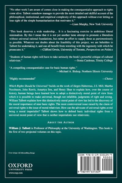 How can the advocate of universal rights avoid being a moral imperialist? In this book, Talbott builds on the work of Rawls, Habermas, Mill, Sen, and Shue to explain how, over the course of history, human beings have learned how to adopt a distinctively moral standpoint from which it is possible to make universal, though not infallible, judgments of right and wrong. He explains how this distinctively moral standpoint has led to the discovery of the moral importanceof nine basic rights. His accessible book is important for debates on human rights, but also for the broader issues of moral and cultural relativism.