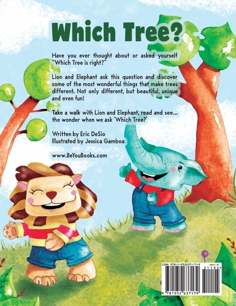 Have you every thought about or asked yourself 'Which Tree is right'? Lion and Elephant ask this question and discover some of the most wonderful things that make trees different. Not only different, but beautify, unique and even fun! For example, did you know that there is a tree that looks like it could use a pillow? Or do you want to know something funny?... There is a type of tree that's called 'Money'! Take a walk with Lion and Elephant, read and see... the wonder when we ask 'Which Tree?'