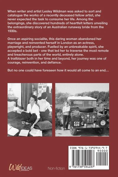 When writer and artist Lesley Wildman was asked to sort and catalogue the works of a recently deceased fellow artist, she never expected the task to consume her life. Among the belongings, she discovered hundreds of heartfelt letters unveiling the extraordinary story of an Australian runaway bride from the 1930s. Once an aspiring socialite, this daring woman abandoned her marriage and reinvented herself in London as an actress, playwright, and producer. Fuelled by an unbreakable spirit, she accepted a bold bet - one that led her to traverse the most remote and treacherous parts of the world, entirely alone. A trailblazer both in her time and beyond, her journey was one of courage, reinvention, and defiance. But no one could have foreseen how it would all come to an end.