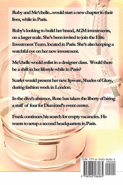 Ruby and Me'chelle ... would start a new chapter in their lives, while in Paris Ruby's looking to build her brand, AGM investments, on a larger scale. She's been invited to join the Elite Investment Team, located in Paris. She's also keeping a watchful eye on her new investment. Me'chelle would enlist in a designer class. Would there be a shift in her lifestyle while in Paris? Scarlet would present her new lipware, Shades of Glory, during fashion week in London. In the diva's absence, Rose has taken the liberty of hiring a staff of four for Diamond's event center. Frank continues his search for empty vacancies. He wants to setup a second headquarters in Paris.