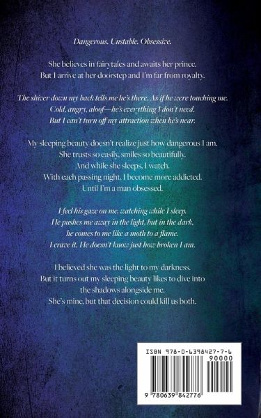 Dangerous. Unstable. Obsessive. She believes in fairytales and awaits her prince. But I arrive at her doorstep and I'm far from royalty. The shiver down my back tells me he's there. As if he were touching me. Cold, angry, aloof-he's everything I don't need. But I can't turn off my attraction when he's near. My sleeping beauty doesn't realize just how dangerous I am. She trusts so easily, smiles so beautifully. And while she sleeps, I watch. With each passing night, I become more addicted. Until I'm a man obsessed. I feel his gaze on me, watching while I sleep. He pushes me away in the light, but in the dark, he comes to me like a moth to a flame. I crave it. He doesn't know just how broken I am. I believed she was the light to my darkness. But it turns out my sleeping beauty likes to dive into the shadows alongside me. She's mine, but that decision could kill us both.