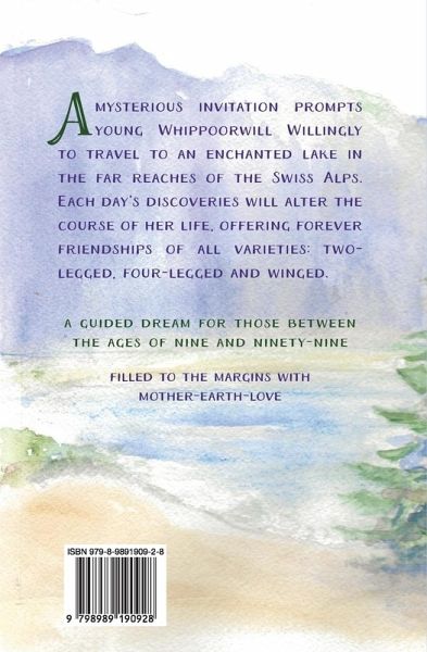 A mysterious invitation prompts young Whippoorwill Willingly to travel to an enchanted lake in the far reaches of the Swiss Alps. Each day's discoveries will alter the course of her life, offering forever friendships of all varieties: two-legged, four-legged and winged. A guided dream for those between the ages of nine and ninety-nine. Filled to the margins with Mother-Earth-Love
