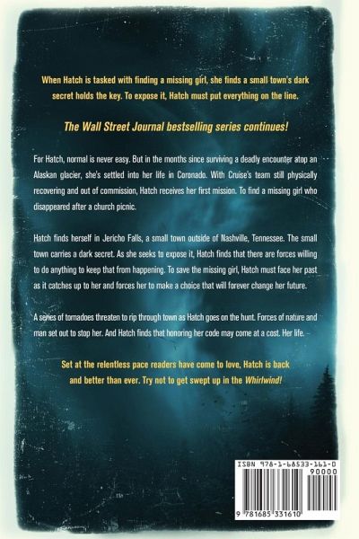 When Hatch is tasked with finding a missing girl, she finds a small town's dark secret holds the key. To expose it, Hatch must put everything on the line. The Wall Street Journal bestselling series continues! For Hatch, normal is never easy. But in the months since surviving a deadly encounter atop an Alaskan glacier, she's settled into her life in Coronado. With Cruise's team still physically recovering and out of commission, Hatch receives her first mission. To find a missing girl who disappeared after a church picnic. Hatch finds herself in Jericho Falls, a small town outside of Nashville, Tennessee. The small town carries a dark secret. As she seeks to expose it, Hatch finds that there are forces willing to do anything to keep that from happening. To save the missing girl, Hatch must face her past as it catches up to her and forces her to make a choice that will forever change her future. A series of tornadoes threaten to rip through town as Hatch goes on the hunt. Forces of nature and man set out to stop her. And Hatch finds that honoring her code may come at a cost. Her life. Set at the relentless pace readers have come to love, Hatch is back and better than ever. Try not to get swept up in the Whirlwind!