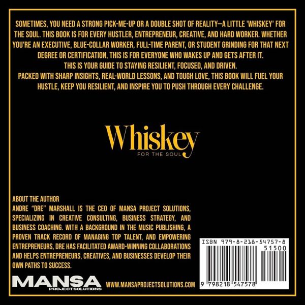 Whiskey for the Soul by Andre "Dre" Marshall is a no-nonsense guide for anyone on the grind. Packed with wisdom and motivation, it pushes you to stay resilient, face challenges, and keep hustling toward your dreams.