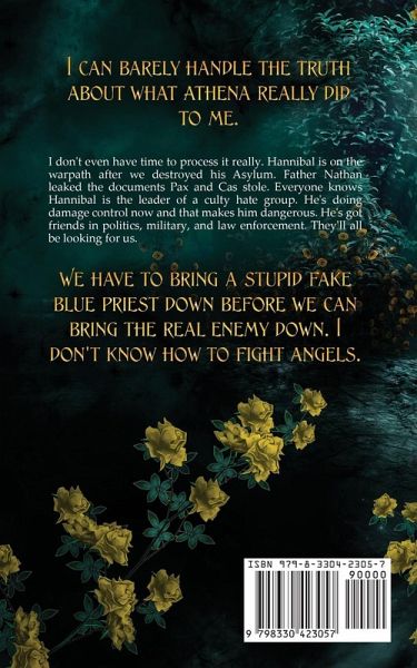 I can barely handle the truth about what Athena really did to me. I don't even have time to process it really. Hannibal is on the warpath after we destroyed his Asylum. Father Nathan leaked the documents Pax and Cas stole. Everyone knows Hannibal is the leader of a culty hate group. He's doing damage control now and that makes him dangerous. He's got friends in politics, military, and law enforcement. They'll all be looking for us. We have to bring a stupid fake blue priest down before we can bring the real enemy down. I don't know how to fight angels.