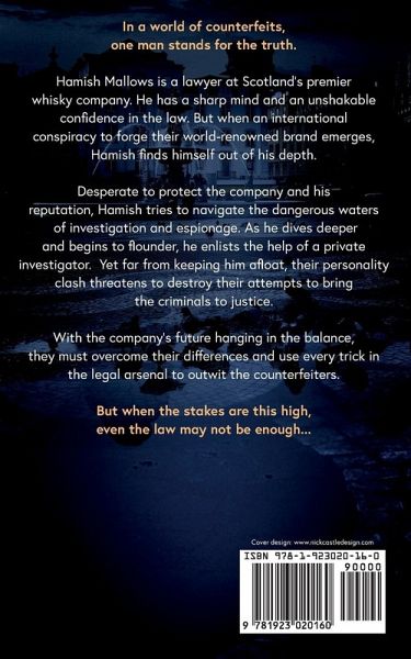 In a world of counterfeits, one man stands for the truth. Hamish Mallows is a lawyer at Scotland's premier whisky company. He has a sharp mind and an unshakable confidence in the law. But when an international conspiracy to forge their world-renowned brand emerges, Hamish finds himself out of his depth. Desperate to protect the company and his reputation, Hamish tries to navigate the dangerous waters of investigation and espionage. As he dives deeper and begins to flounder, he enlists the help of a private investigator. Yet far from keeping him afloat, their personality clash threatens to destroy their attempts to bring the criminals to justice. With the company's future hanging in the balance, they must overcome their differences and use every trick in the legal arsenal to outwit the counterfeiters. But when the stakes are this high, even the law may not be enough...