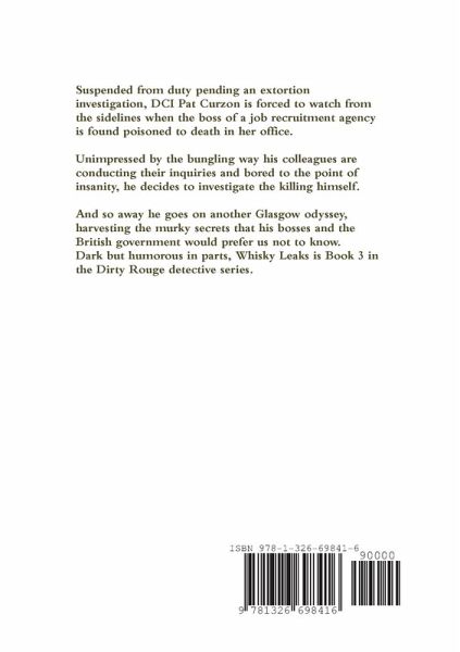 Suspended from duty pending an extortion investigation, DCI Pat Curzon is forced to watch from the sidelines when the female boss of a job recruitment agency is found poisoned to death in her office. Unimpressed by the bungling way his colleagues are conducting their inquiries and bored to the point of insanity, he decides to investigate the killing himself. And so away he goes on another Glasgow odyssey, harvesting the dark secrets that his bosses and the British government would prefer us not to know. Dark but humorous in parts, Whisky Leaks is Book 3 in the Dirty Rouge detective series.