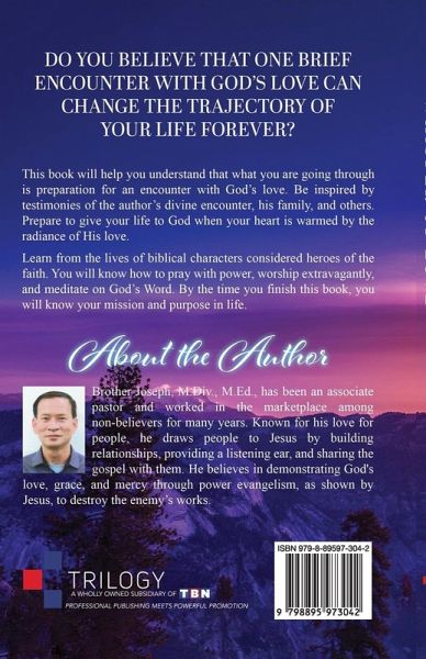 Do you believe that one brief encounter with God's love can change the trajectory of your life forever? This book will help you understand that what you are going through is preparation for an encounter with God's love. Be inspired by testimonies of the author's divine encounter, his family, and others. Prepare to give you life to God when your heart is warmed by the radiance of His love. Learn from the lives of biblical characters considered heroes of the faith. You will know how to pray with power, worship extravagantly, and meditate on God's Word. By the time you finish this book, you will know your mission and purpose in life.
