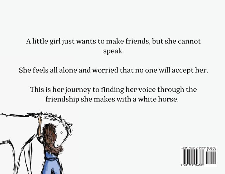 'Whisper' is the story of a little girl about to start school, but she struggles to speak out loud and is afraid she will not make friends. This is her journey to finding her voice through the friendship she makes with a white horse. This is the perfect book for children dealing with selective mutism and / or anxiety or a lovely story for children starting school. Written by an author who also struggled with selective mutism and anxiety as a child throughout her early school years.