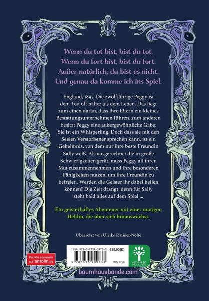 England, 1897: Peggy Devona, 12 Jahre alt, ist ein Whisperling - sie hat die besondere Gabe, mit Toten zu kommunizieren, die noch nicht gänzlich auf die andere Seite übergetreten sind. Und das tut sie auch regelmäßig, denn ihre Eltern betreiben ein Bestattungsunternehmen und Peggy überbringt den Hinterbliebenen häufig Nachrichten ihrer Lieben - natürlich heimlich und unerkannt, denn da viele Leute abergläubisch sind, haben sie Angst vor Peggys Gabe und so muss sie diese geheimhalten, soweit möglich.