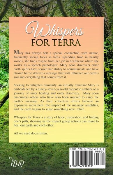 Mary has a connection with nature, frequently seeing faces in trees. When an ancient tree named Cowboy reaches out for help, Mary, struggling with self-doubt, discovers her ability to communicate with them. Alongside her friend Bella and Bella's foster son Matt, Mary delves into the forest's environmental crisis, learning about soil health and sustainable practices. As they encounter allies like Portia, and others marked to carry the earth's message, Mary finds her voice and embraces her destiny to protect the forest. As their collective efforts become an expansive movement, the impact of the message amplifies, and the earth begins to sense something new: relief. Whispers for Terra is a story of hope, inspiration, and finding one's path, showing us the impact group actions can make to heal our earth and each other. It shows the serendipitous power of events when we find courage to move beyond our fears. It affirms that we are so much more than we believe ourselves to be. Whispers for Terra weaves a tale of the life teeming in our forests, proposing that sentient life of the forest is not so far removed from our own human experience.