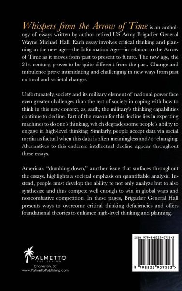 This anthology of essays written by author retired US Army Brigadier General Wayne Michael Hall involves critical thinking and planning in the new age-the Information Age-in relation to the Arrow of Time as it moves from past to present to future. The new age, the 21stcentury, proves to be quite different from the past. Change and turbulence prove intimidating and challenging in new ways from past cultural and societal changes. Unfortunately, society and its military element of national power face even greater challenges than the rest of society in coping with how to think in this new context, as, sadly, the military's thinking capabilities continue to decline. Part of the reason for this decline lies in expecting machines to do one's thinking. Similarly, people accept data via social media as factual when this data is often meaningless. Alternatives to this endemic intellectual decline appear throughout these essays.